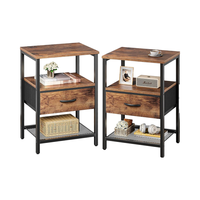 Ensemble de tables de chevet modernes 2 tables de chevet en bois tissu tiroir maille étagère côté table de rangement commode étagère ouverte cadre en fer