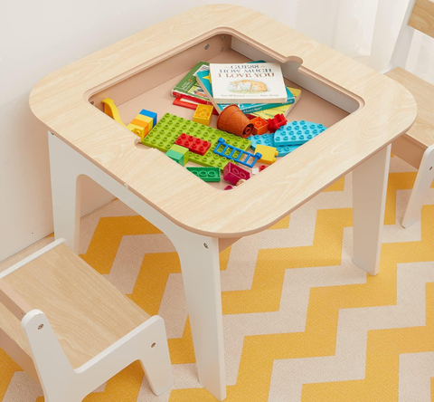 बच्चों के लिए लकड़ी के फर्नीचर की मेज और कुर्सी सेट खेलते हैं