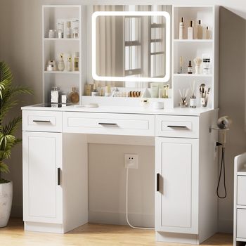현대 흰색 유리 탑 드레싱 화장대 책상 테이블 멀티 스토리지 서랍과 여자 침실 사용 가벼운 메이크업 액세서리
