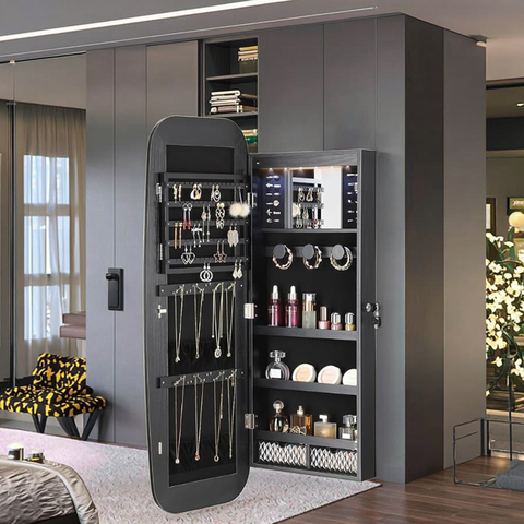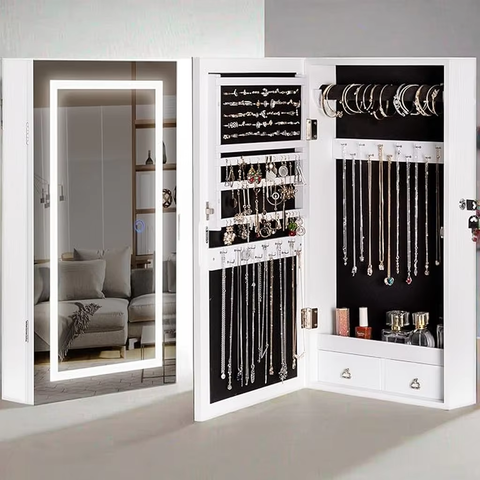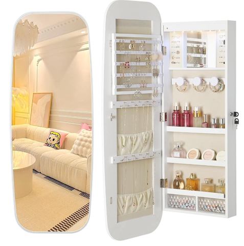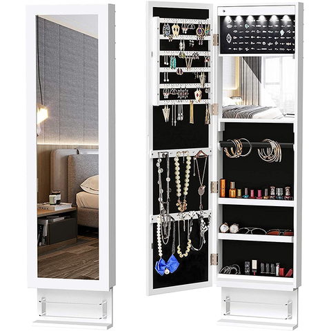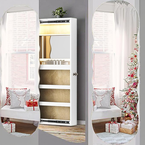 Armario de joyería montado en la pared, organizador de almacenamiento con espejo de longitud completa