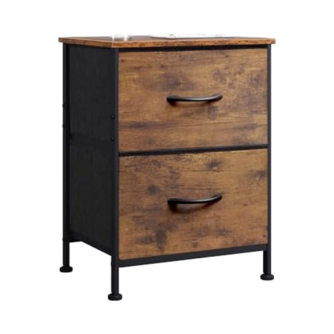 Modern Small 2 Gaveta Dresser Night Stand Bins Quarto Armário Oak tecido ajustável