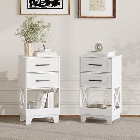 Phoenix Casa Moderna Branca De Madeira Nightstand Set 2 Mesas Laterais 2 Gavetas Prateleira Aberta Pés Sólidos para Quarto Sala