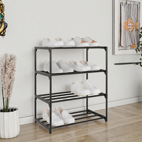 ชั้นวางรองเท้าโลหะแบบประหยัดหลายชั้นสีดำเรียบง่ายใหม่