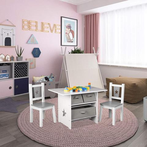 Phoenix Home Bàn Và Ghế Trẻ Em Bằng Gỗ Thiết Kế Màu Xám Và Trắng Có Giá Để Đồ